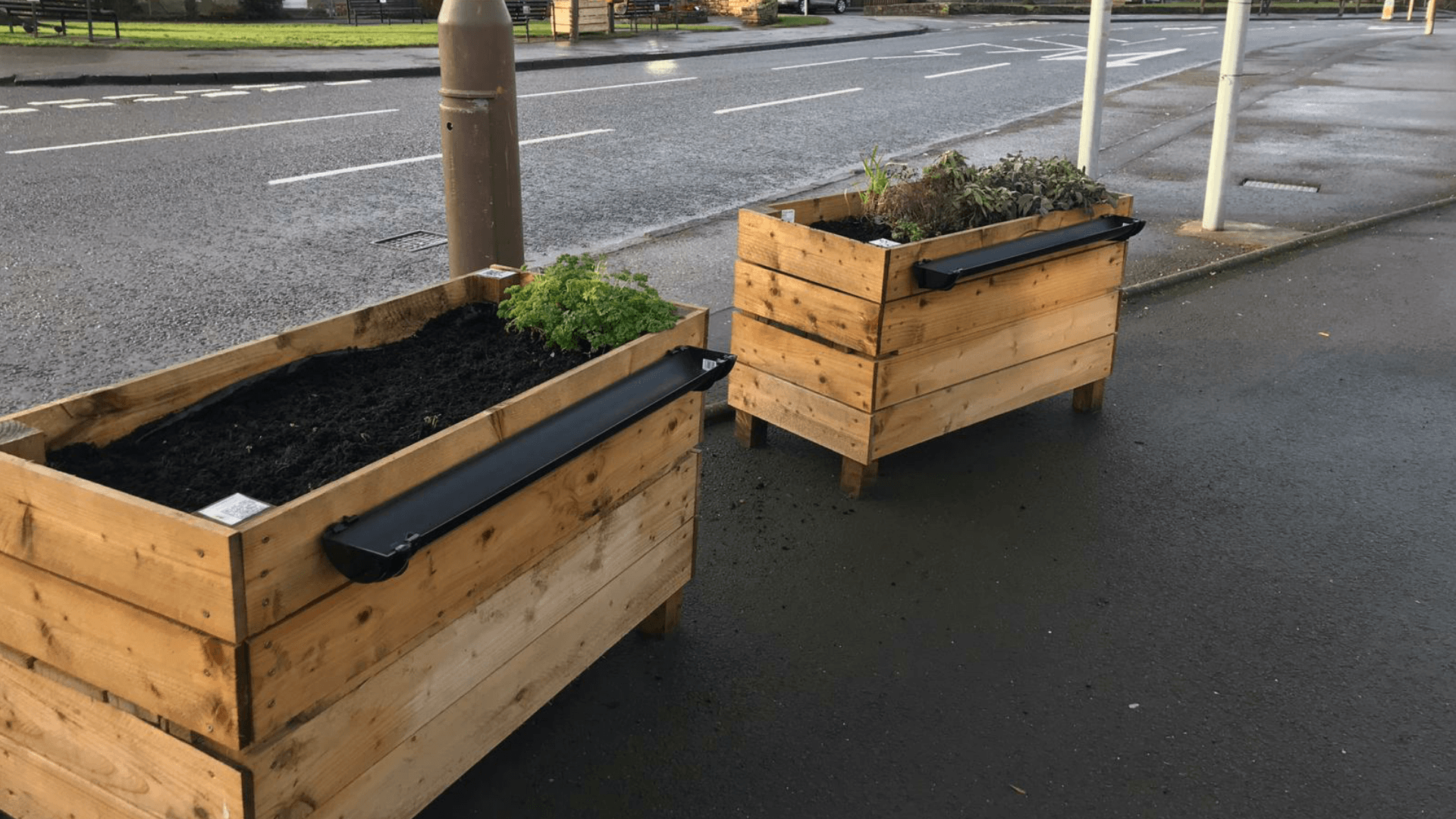 A simple meter of guttering added along our hand crafted wooden planters means we add extra growing space, around 10% more.